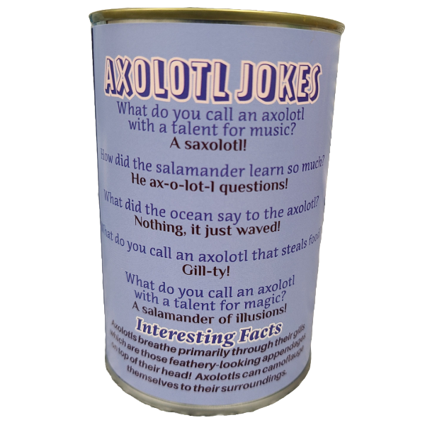 - π Comes with jokes! β Funny axolotl jokes and fascinating facts printed right on the can