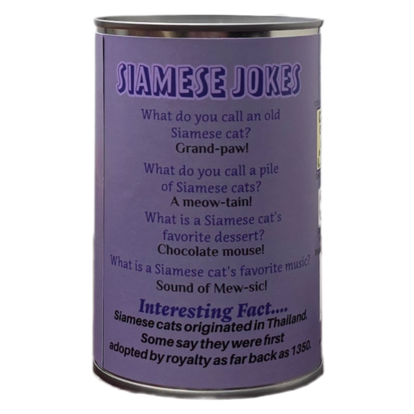 - π Comes with jokes! β Funny Siamese cat jokes and fascinating feline facts printed right on the can