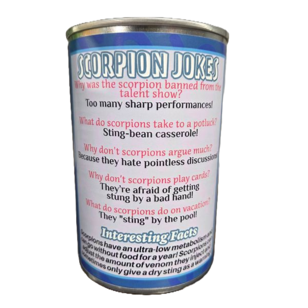 - π Comes with jokes! β Funny scorpion jokes and fascinating arachnid facts printed right on the can