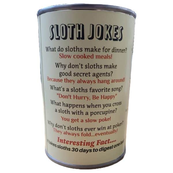- π Comes with jokes! β Funny sloth jokes and fascinating facts printed right on the can